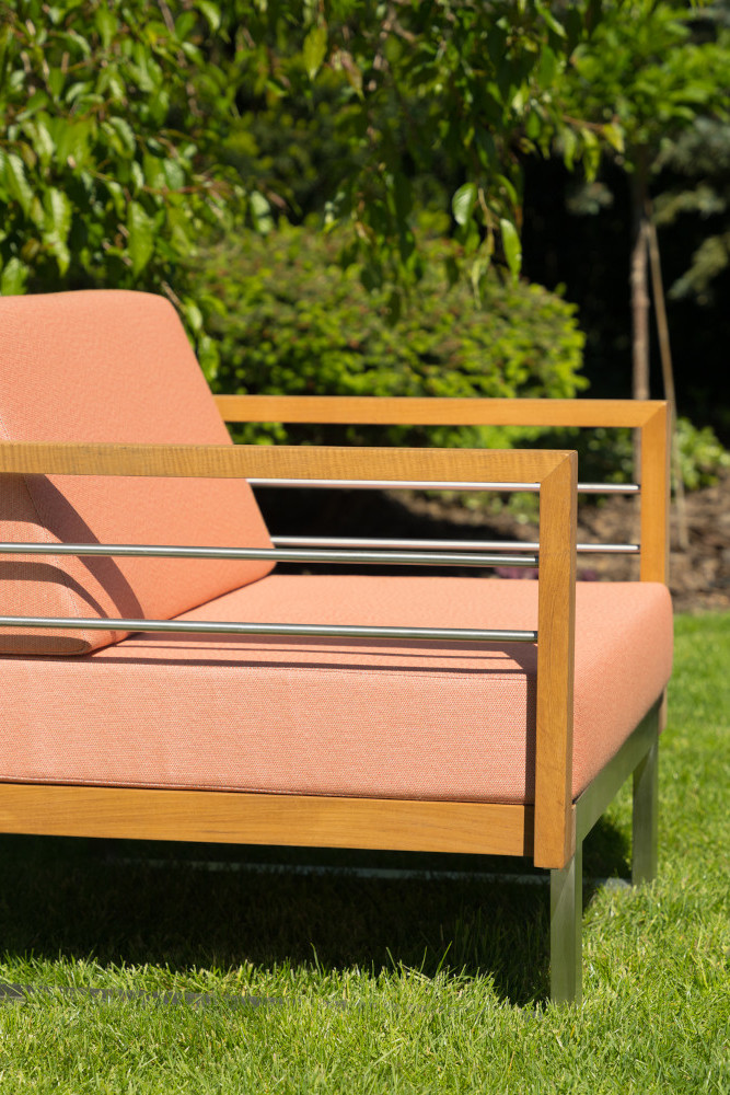Szczególne połączenie ciepła drewna i lekkości stalowej konstrukcji czyni z zestawu wypoczynkowego Sydney doskonałą opcję subtelnej w stylu przestrzeni tarasowej.