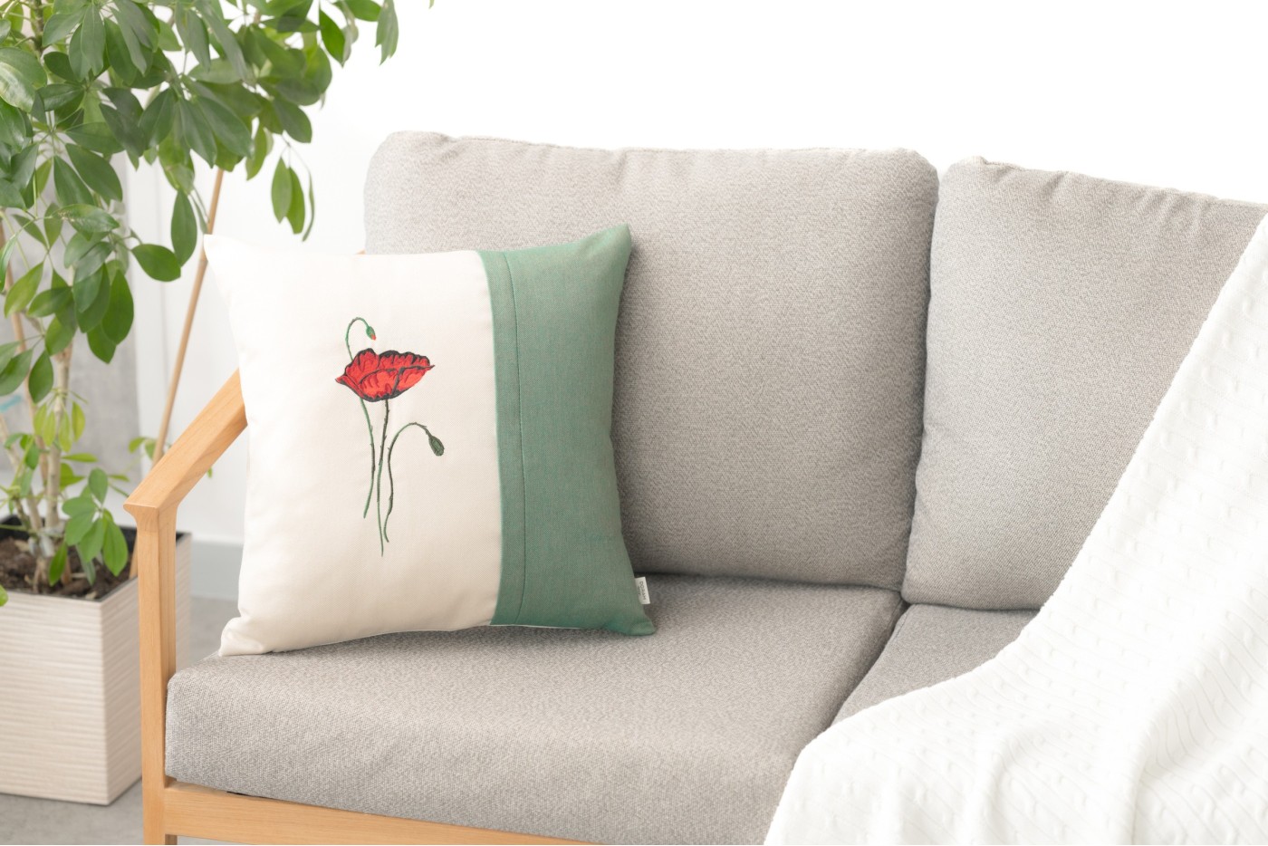 Poduszka dekoracyjna Mak Szmaragd 45 x 45 cm