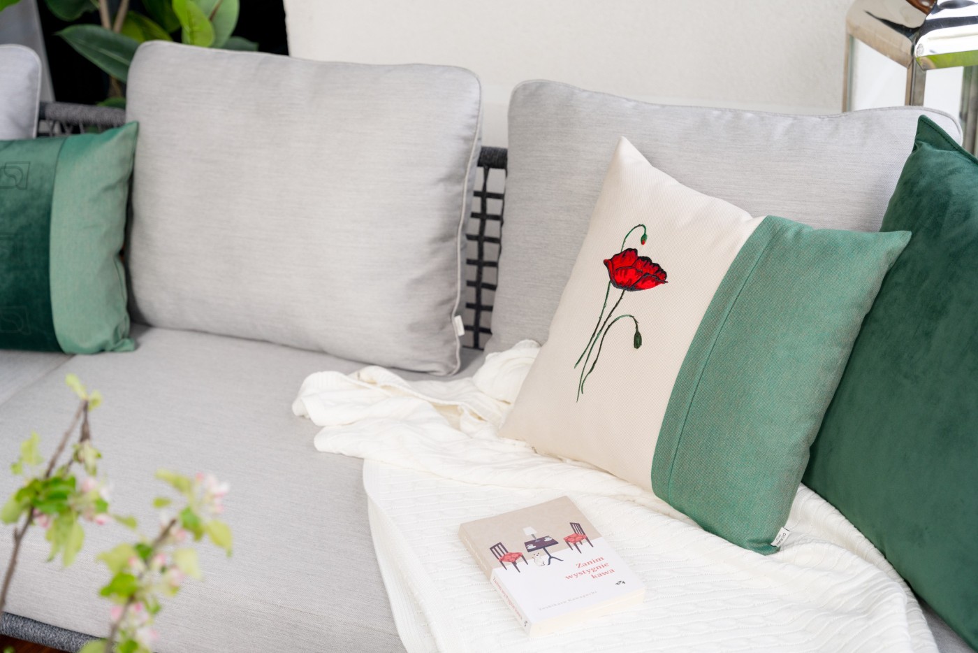- poduszka akrylowa z haftem 45 x 45 cm