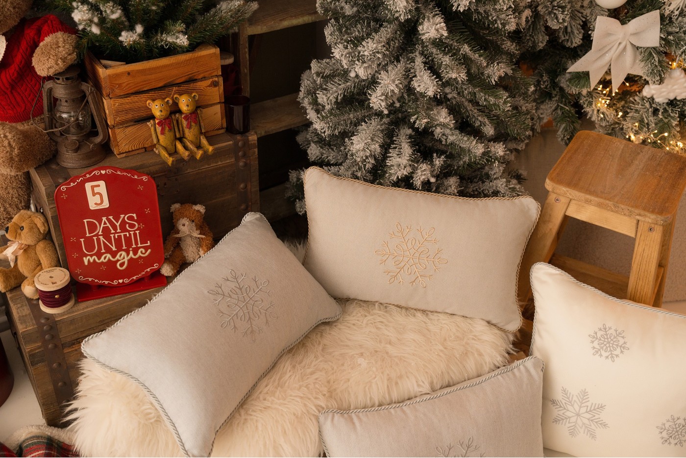 Szara poduszka zimowa Snowflake IX 50 x 30 cm