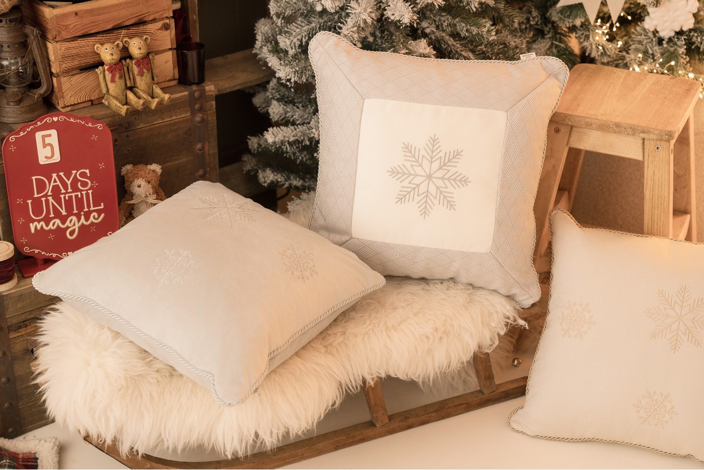 Srebrna poduszka zimowa Snowflake IV 50x50 cm