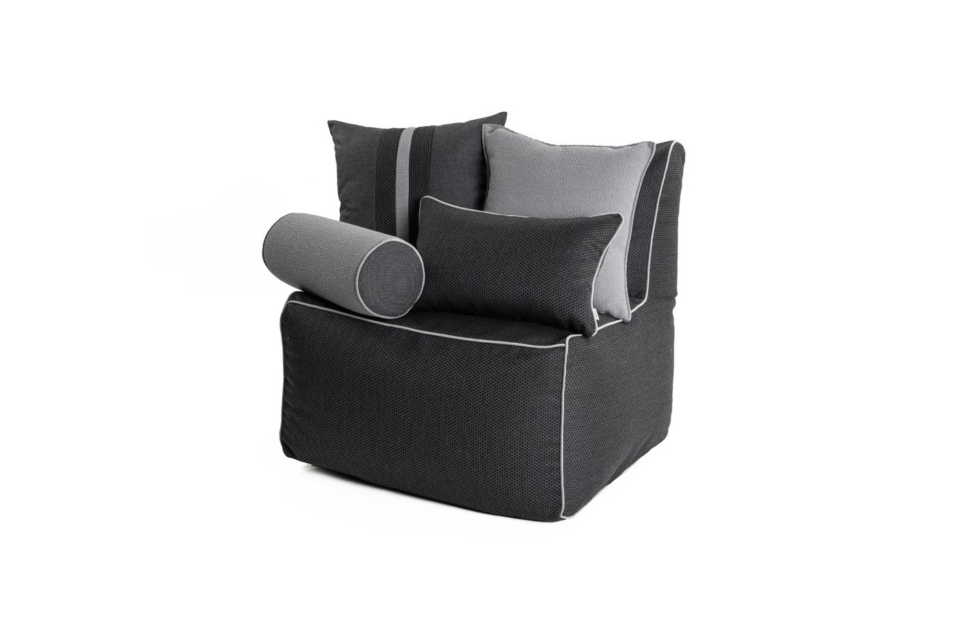 - Fotel pufa z tkaniny akrylowej z ozdobną kedrą